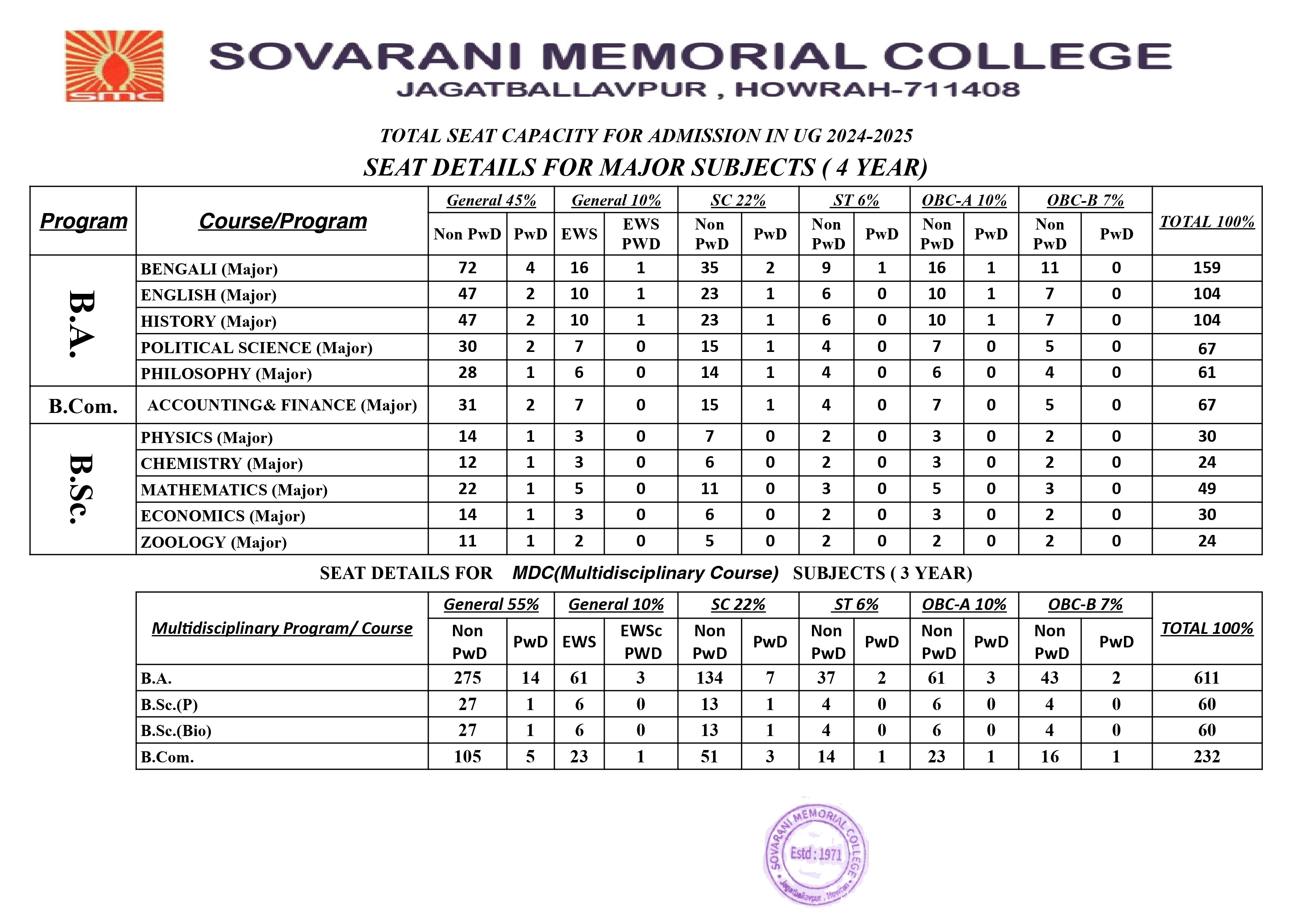 B. Candidates who have passed the Higher Secondary (10+2) Vocational examination conducted by the W. B. S. C. V. E. T. shall be eligible to seek Admission to the B.A. (General) only.