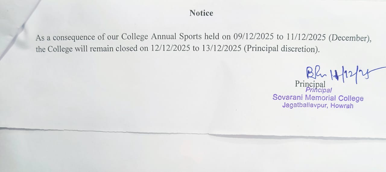 Title: College closed on 12 Dec to 14 th Dec, 2025